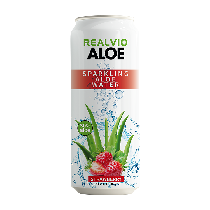 Natural Strawberry Flavored 330ml Alu Can Sparkling Aloe Vera Filtered Fruit Vegetable Juice Bottle Soft Refreshing Box